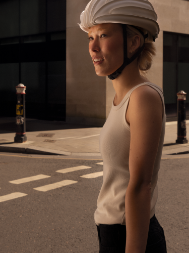 - Put the helmet on your head and simultaneously pull both ends of the strap until the fit is comfortable.